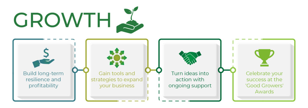 The only mandatory training is the initial business plan, without that you cannot progress and will be refunded your fee. To qualify as a ‘Good Grower’ you will need to attend all check-ins and at least 4 sets of training during the 12-month period.